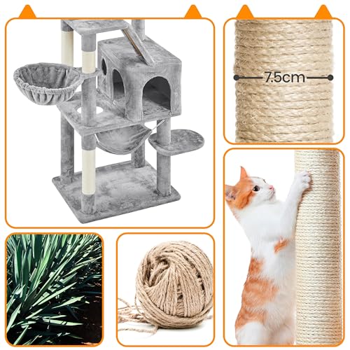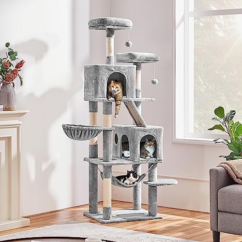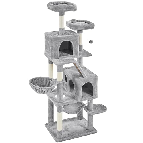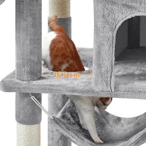 Yaheetech Albero Tiragraffi per Gatti 181,5 cm Torre con Condomini Posatoi Cestino Amaca 5 Pali tiragraffi Grigio Chiaro