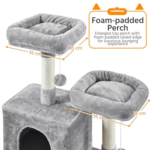 【La lettiera per gatti ideale】I robusti pali sono avvolti da una corda di sisal per mantenere le zampe del gatto pulite e ordinate ed evitare che tocchino i mobili. Questo albero da arrampicata è dotato anche di due pompon per aggiungere ancora più divertimento.