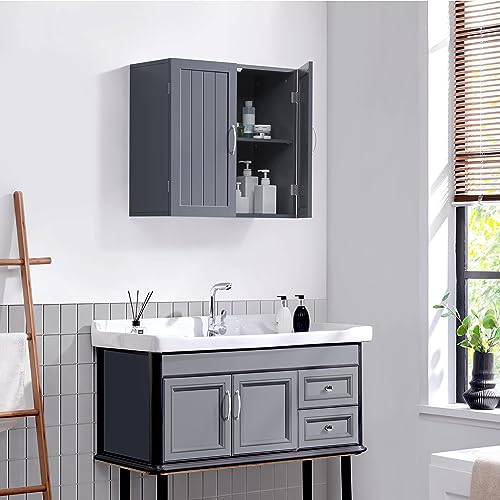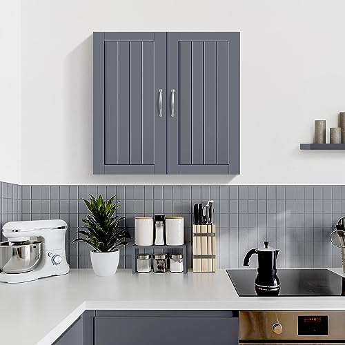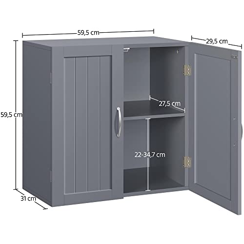 Yaheetech Armadietto Bagno da Parete Armadio Sospeso Mobiletto con 2 Ante e Ripiano Regolabile 60 x 30 x 60 cm Mobile da Cucina Lavatrice Salvaspazio Grigio Scuro