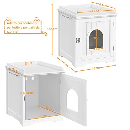 Stabile e robusta: realizzata in MDF di qualità e costruita in una struttura cubica carina e stabile, questa lettiera per gatti con un interno di 40 x 50 cm e altezza di 44,6 cm può contenere tranquillamente senza sforzo fino a 54 kg sulla parte superiore e 15 kg all'interno.