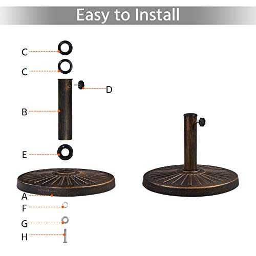 Base standard: questa base per ombrellone è dotata di adattatori in gomma, i quali si adattano facilmente alle dimensioni standard del diametro del palo: 3,8 cm. Può adattarsi alla maggior parte degli ombrelli a sbalzo e con più scelte.