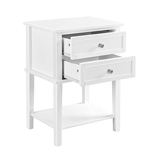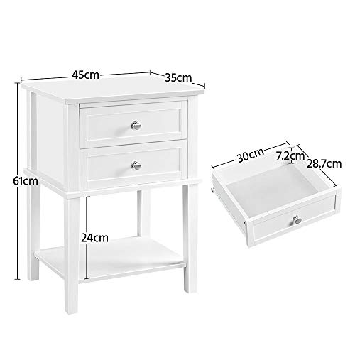 Yaheetech Set 2 Comodini Camera da Letto con 2 Cassetti Comodino Bianco Shabby Chic Comò Moderno Mobiletto da Letto Tavolino Lato da Caffè Organizzatore 45 x 35 x 61 cm