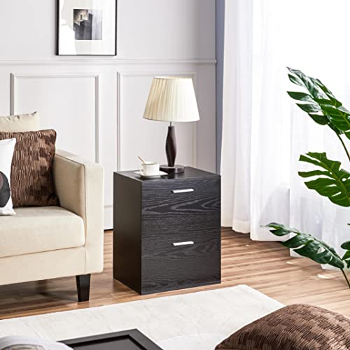 Yaheetech Set 2 Comodini da Camera da Letto Comodino con Cassetti Mobiletto da Letto Tavolino Moderno Stile Shabbu Chic 55 x 45 x 35 cm Nero