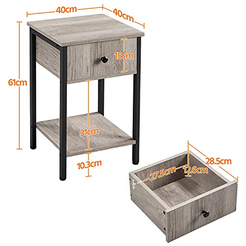 Yaheetech Set 2 Comodini Camera da Letto Vintage Tavolino Divano Industriale con Cassetto e Ripiano 40 x 40 x 61 cm Tavolino Basso Laterale Industriale in Legno e Metallo Grigio