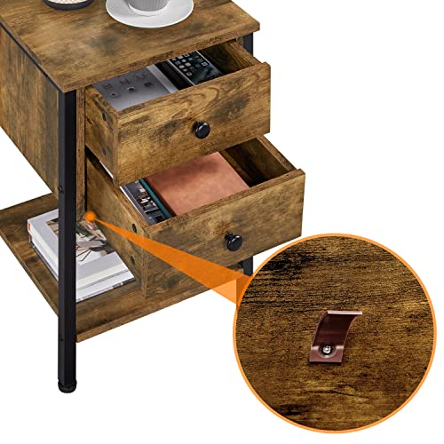 Yaheetech Set di 2 Comodini con 2 Cassetti Vintage Tavolino Camera da Letto Vintage Tavolini da Salotto 40 x 40 x 61 cm/Studio/Ufficio in MDF e Ferro Marrone Rustico