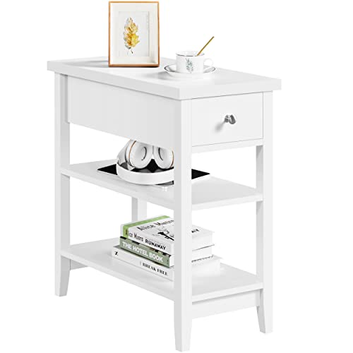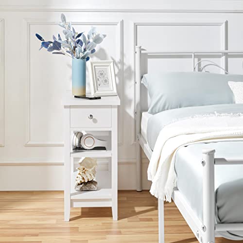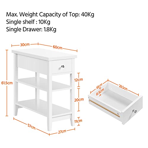 Yaheetech Comodino da Camera da Letto Stretto Bianco Tavolo Laterale da Divano Mobiletto Lato con Cassetto a 2 Ripiani 60 × 30 × 61,5 cm Camera Soggiorno Bianco