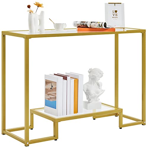 Yaheetech Consolle da Ingresso Tavolino da Entrata a 2 Ripiani Moderno Piano in Vetro Temperato Struttura Metallo Robusto Piedini Regolabili per Soggiorno Corridoio 106 x 35 x 75 cm