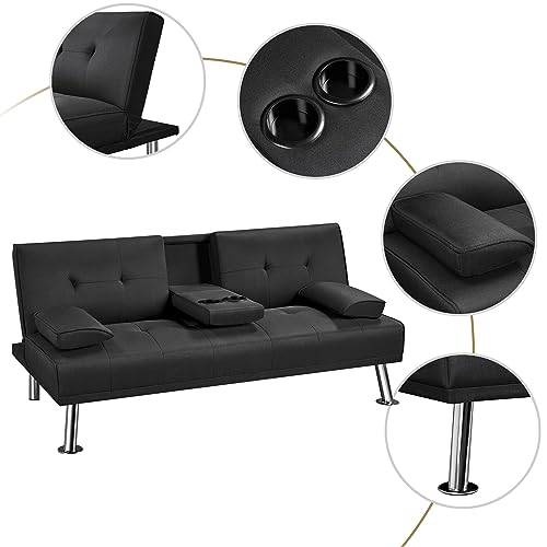 Yaheetech Divano Convertibile in Letto con 2 Cuscini Divano Letto Pieghevole 3 in 1 Mobile Arredamento con Piccolo Tavolino 167 × 81,5 × 75 cm da Soggiorno in Tessuto Nero