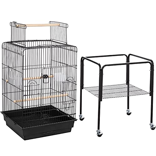 Yaheetech Gabbia per Uccelli Pappagalli Inseparabili Calopsite in Metallo con Carrello Rotelle Voliera per Uccelli con Tetto Apribile Nera 46 x 46 x 119 cm