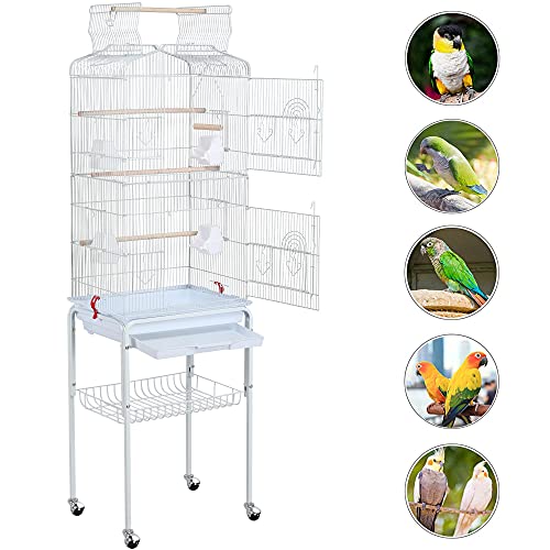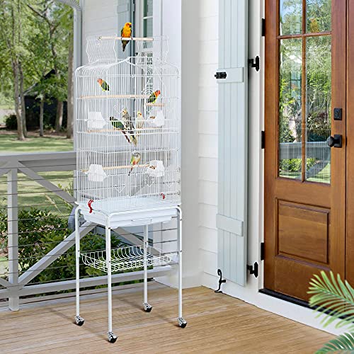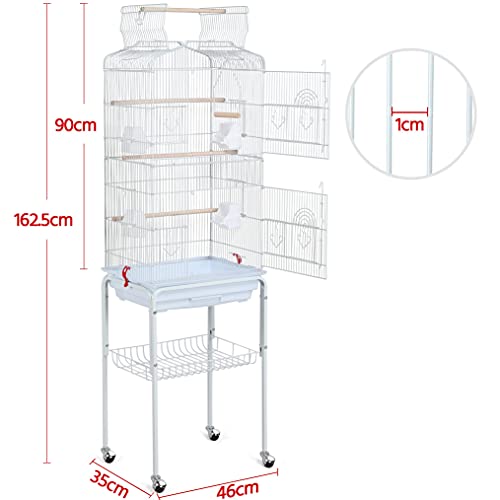 Yaheetech Gabbia Voliera per Uccelli Pappagalli Inseparabili Calopsite Parrochetti in Metallo con Piedistallo Ruote e Tetto Apribile 46 x 35,3 x 150,6 cm Bianca