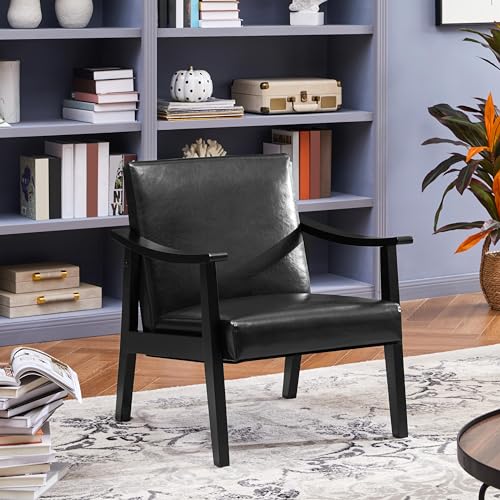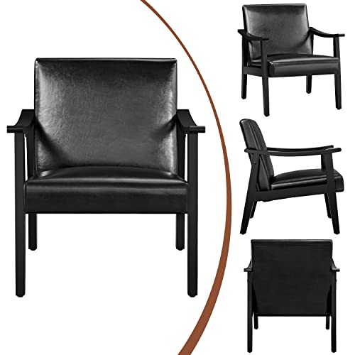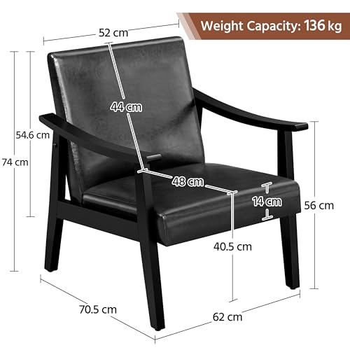 Yaheetech Poltrona Lounge in Ecopelle Imbottita con Schienale Braccioli Ergonomica da Salotto/Lettura/Ufficio/Studio/Intrattenimento Nero