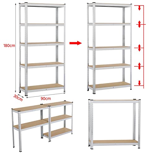 Materiale Robusto: venduto in un set di 2 pezzi di scaffali a 5 ripiani, la cornice dello scaffale è in acciaio zincato antiruggine, i 5 ripiani sono di pannelli di legno in MDF utilizzano materiale da 5 mm di spessore, sono resistenti e robusti. Carico massimo per ripiano: 175 Kg.
