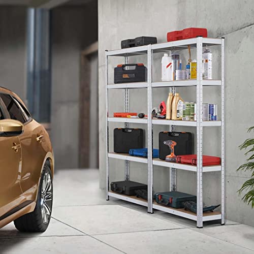 Yaheetech Scaffale in Metallo Garage a 5 Ripiani Regolabili Capacità di Carico 175 kg per Ogni Ripiano Mensola Industriale da Officina Cantina Magazzino 180x360x30cm/Argento