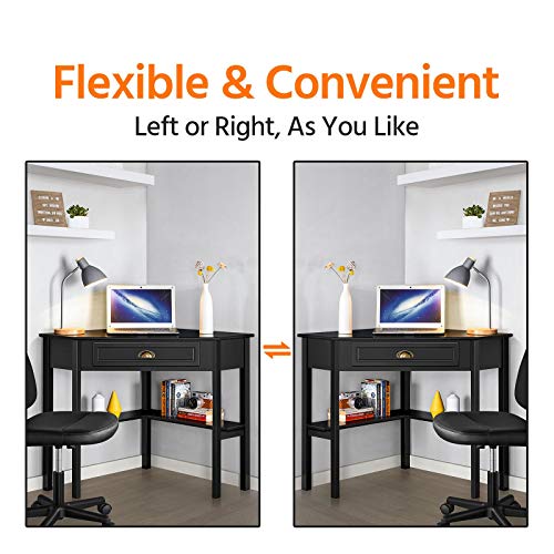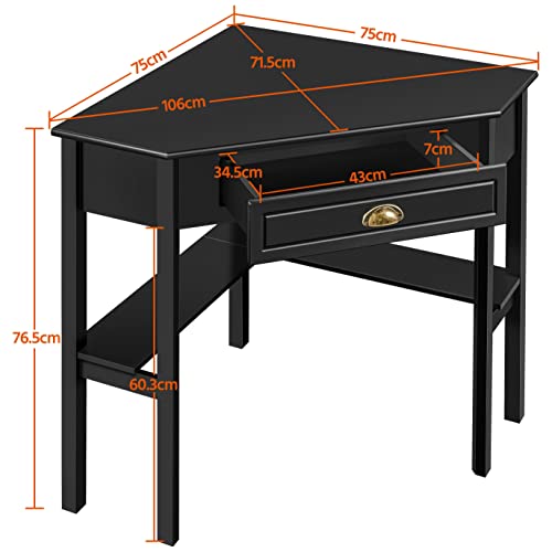Yaheetech Scrivania Angolare per Computer Desktop Computer in Legno con Cassetto e Ripiano Portaoggetti per Postazione di Lavoro Design Classico ed Elegante 106 × 71,5 × 76,5 cm Nero