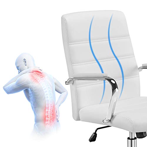 Yaheetech Sedia Ufficio Scrivania Bianca Girevole a Rotelle in Ecopelle Imbottita Ergonomica Poltrona Ufficio Altezza Regolabile Portata 130 kg