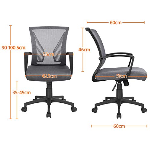 Robusta e Resistente: la sedia da ufficio Yaheetech è realizzata in una resistente rete di nylon e schiuma ad alta densità, presenta una base metallica a stella robusta, ruote scorrevoli solide e cilindro di gas, in grado di sostenere fino a 100 kg.