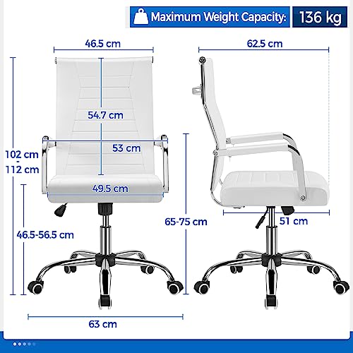 Yaheetech Sedia/Poltrona da Ufficio Ergonomica con Schienale Alto Reclinabile in Finta Pelle da Scrivania a Rotelle Girevole Altezza Regolabile Bianca
