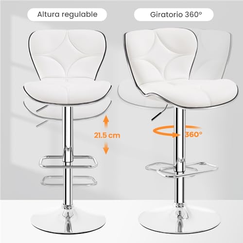 Yaheetech Set 2 Sgabelli Bar Alti Cucina Moderni Design Altezza Regolabile in Similpelle con Schienale a Conchiglia Poggiapiedi Girevole 360° da Penisola Bianchi