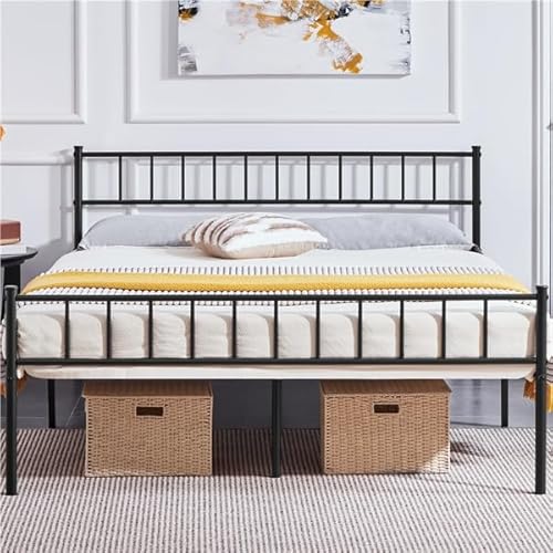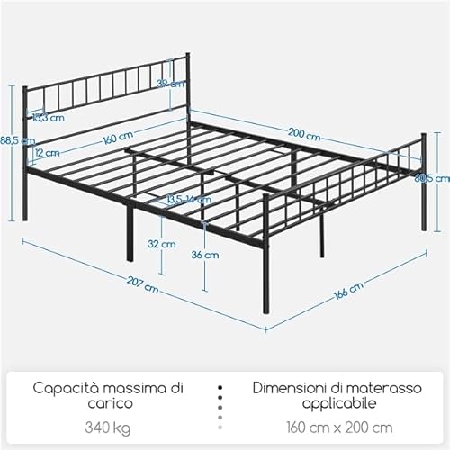 Yaheetech Struttura Letto Singolo in Ferro Battuto a Doghe in Metallo 160 x 200 cm Testiera Semplice Nero