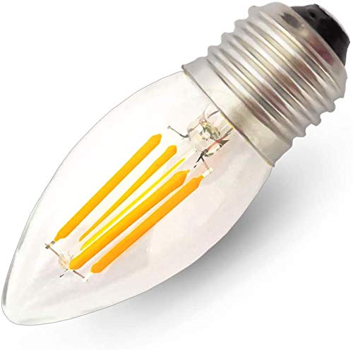 Consumo energetico molto basso - La lampadina a candela LED E27 con 4 LED COB filamento può illuminare la luce super luminosa di circa 400 lumen e consente di risparmiare sui costi energetici fino all'80%. La lampadina a candela LED E27 da 4 W è paragonabile alle tradizionali lampadine a incandescenza da 35-40 W.