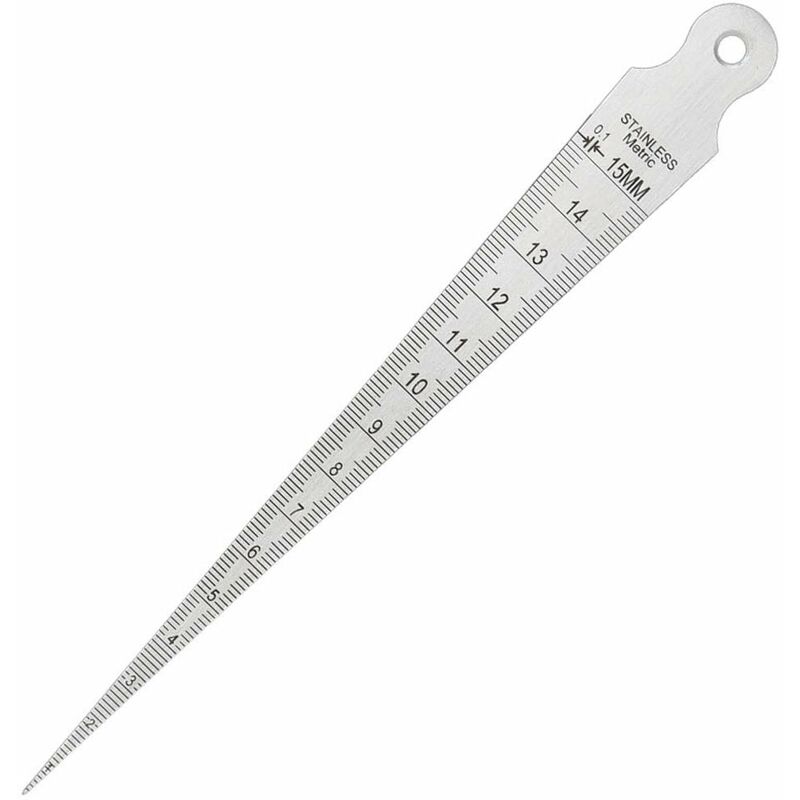 Yakamoz, calibro misura distanze, 1-15 mm in acciaio inox, calibro conico per verifica di saldatura con misure imperiali e metriche. Realizzato in acciaio inox con tacche permanenti incise. La conicità precisa su tutta la lunghezza della calibro ne fa uno strumento pratico per misurare i diametri di piccoli fori, fessure, ecc. Con tacche imperiali da un lato e metriche dall'altro, è uno strumento ideale per i produttori di matrici, macchinisti e sui pavimenti d'ispezione. Caratteristiche: 1. Le figure e gli incrementi precisi sono incisi sulla superficie, facile da leggere. 2. Lucido, luminoso e pulito senza sbavature, linea incisa al laser, non si arrugginisce e non sbiadisce. 3. Fatto in acciaio inox, di piccole dimensioni e dal peso leggero, misura tascabile. 4.Per la misurazione precisa dei fori cilindrici, vi aiuta a ottenere le dimensioni corrette per la riparazione / sostituzione dei cavi dei fori dei muri, ecc. 5. Calibro del cono di saldatura: 1-15 mm. 6. Misure disponibili