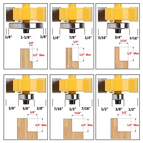 Cuscinetti intercambiabili per tagliare rabbets di diverse profondità produce liscio tagli su entrambe le superfici