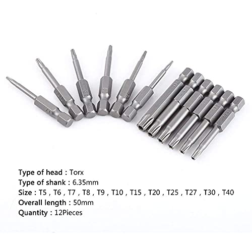 Yakamoz - Set di 12 punte per avvitatore a testa Torx con attacco esagonale T5-T40 da 50 mm