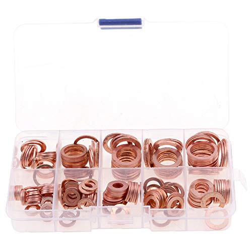 Yakamoz - 200 rondelle piatte in rame, anello metrico, scatola di guarnizione assortita, 9 misure M5-M14, con scatola di guarnizione per tappo di puisard olio