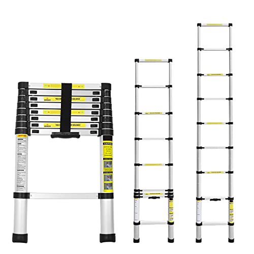 Yakimz 2,6m Scala Telescopica multiuso in Alluminio, Scala Portatile Allungabile, Antiscivolo, Multifunzionale, Leggero e Flessibile, Portata massima 150 kg (9 Pioli)