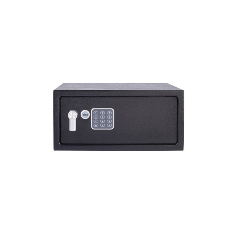 Cassaforte da mobile serie Value per Laptop La cassaforte da mobile Yale è perfetta per la casa o per le camere d'albergo. Può essere collocata all'interno di armadi o altri mobili e, grazie al suo display LCD retroilluminato, non si hanno problemi di lettura anche negli ambienti più bui. Facile accesso con codice PIN Questa cassaforte si apre tramite un PIN da tre a otto cifre facile da impostare. Vengono anche fornite due chiavi, in caso di PIN dimenticato o quando si cambiano le batterie. Indicatori di stato Le casseforti presentano due luci per una facile lettura dello stato di sicurezza: verde per apertura, rosso per errore o bassa batteria (lampeggia) Meccanismo di bloccaggio È dotato di bulloni di bloccaggio da 16 mm che vengono retratti dall'impugnatura una volta immesso il codice corretto. Lockdown automatico per la massima protezione Verrà attivato un blocco di 20 secondi se viene inserito un codice errato 3 volte. Funzionamento: Serratura elettronica con apertura manuale