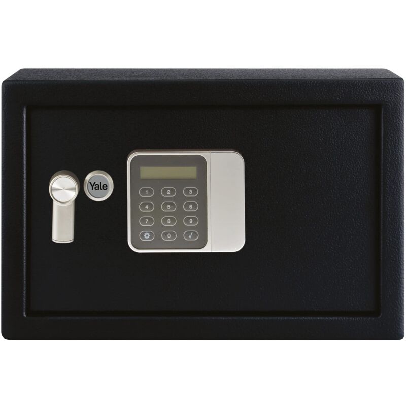 Cassaforte serie Guest media con serratura elettronica e con apertura manuale tramite maniglia. Codice utente/ospite da 3 a 8 cifre. Blocco cassaforte in caso di inserimento codice errato e serratura con chiave tubolare per le aperture di emergenza. Ideale per la casa, piccoli alberghi e hotel. Segnalazione di batteria scarica in dotazione e predisposizione fori di fissaggio e viti incluse.