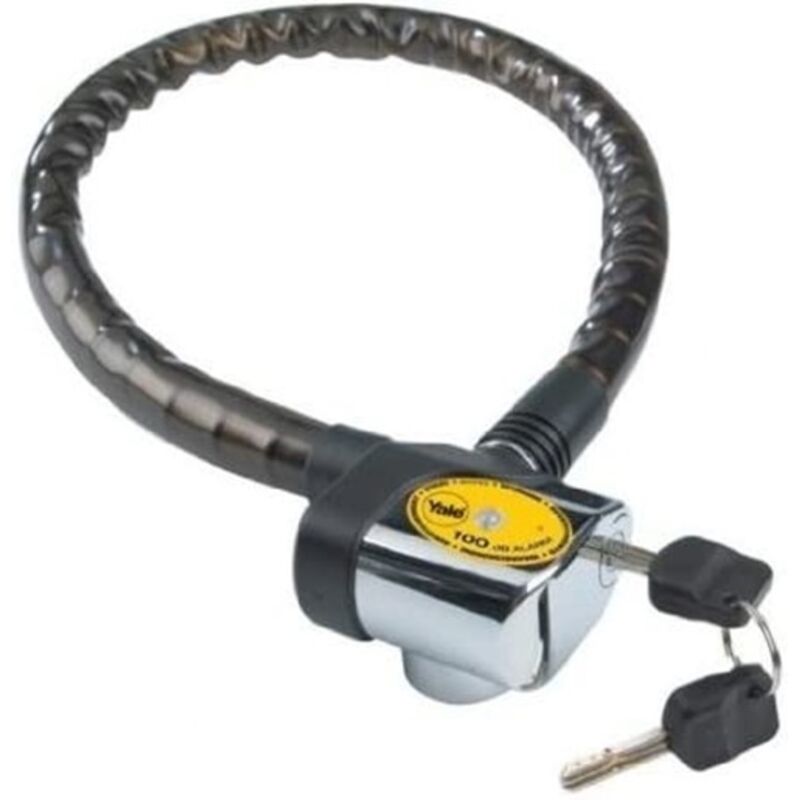 Ideale per le moto - 110 Db di allarme si attiva quando il cavo viene tagliato o il blocco attaccato - sensore di movimento e allarme suoneria possono essere impostati se il blocco è disturbato - cavo in acciaio ø mm.20x850 di lunghezza con rivestimento in plastica - chiusura a chiave - allarme funzionante con 2 batterie ministilo AAA non comprese - dotazione 2 chiavi YCL1/12 ALLARME MAXI