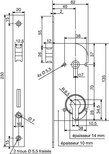 Il suo catenaccio è reversibile e può essere ruotato facilmente senza smontare il bagagliaio. La serratura può quindi essere installata su una porta con apertura destra o sinistra. Il catenaccio a mezzogiorno è gonfio, che limita il rumore durante lo sbattimento. I perni sono in metallo che garantiscono resistenza e durata.