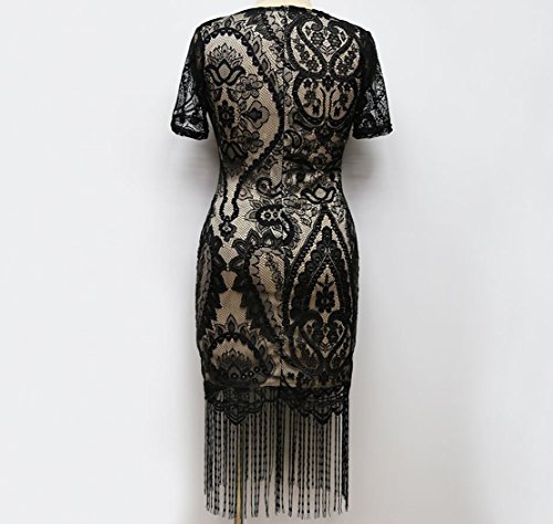 YALI Orlo Frange A Maniche Corte del Pacchetto Vestito Dell'Anca,Nero,XXL