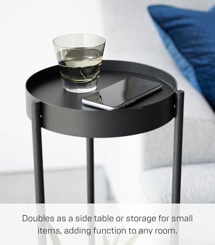 Yamazaki 4367 TOWER Supporto per piante a 2 livelli con rotelle, nero, Acciaio/Polipropilene/Nylon, minimalista, 25 x 26.5 x 70 cm