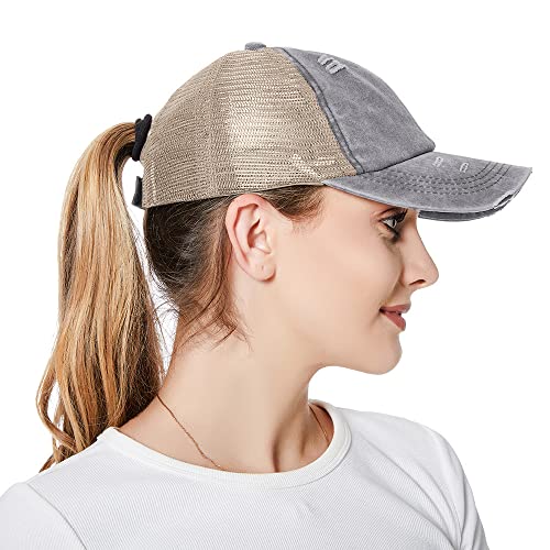 【Design a coda di cavallo】Il velcro regolabile sul retro del cappello ti aiuta a regolare liberamente la circonferenza della testa del cappello, rendendolo facile e comodo da indossare. Ancora più importante, l'elastico a coda di cavallo incrociata a tre fessure si adatta a ragazze o donne con coda di cavallo alta o bassa.