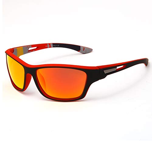 YAMEIZE Occhiali da sole Polarizzati Uomo Donna, Protezione UV400,Sport all'aria aperta,per Baseball Corsa Ciclismo Pesca Escursioni Sciare Golf (Red Frame Red)