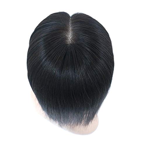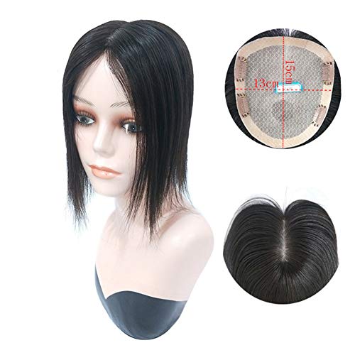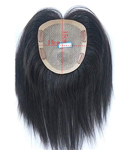 Yanamy - Topper per capelli umani spessi con clip in seta da 12,7 x 15,2 cm, per donne, 25,4 cm, marrone scuro