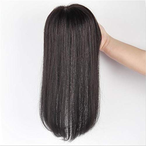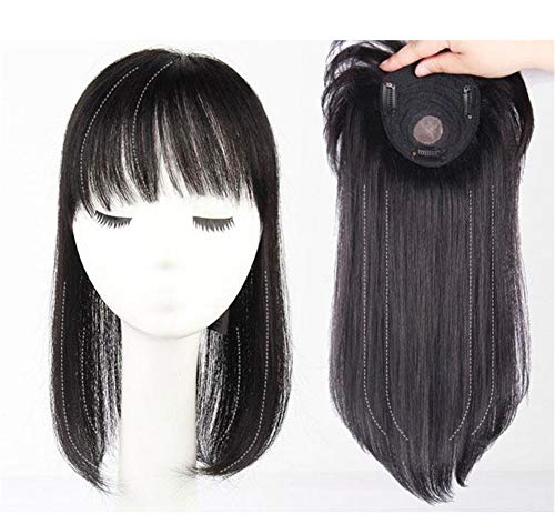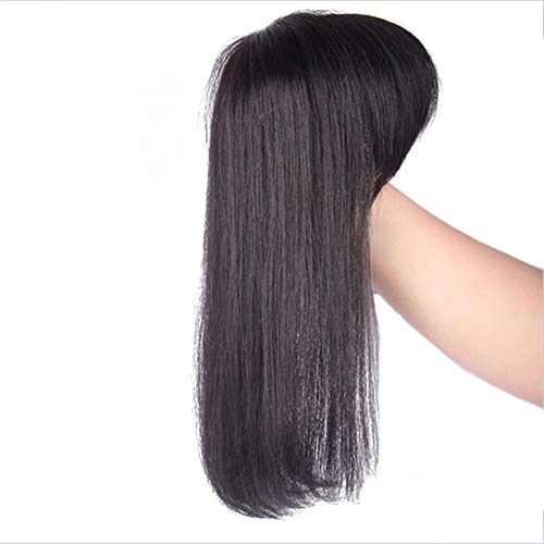 Yanamy - Topper per capelli veri e propri capelli umani con frangia per fare a mano, per diradare i capelli, 20,3 cm, colore nero naturale