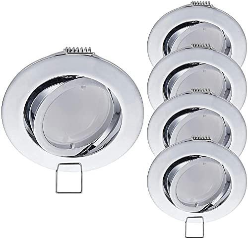 YanFeiYit YSLS Faretto da incasso a LED, rotondo, cromato, 5 Watt, 230 V, dimmerabile, modulo GU10, orientabile, diametro 68 - 76 mm, diametro foro - faretto da incasso (5 pezzi, bianco neutro)