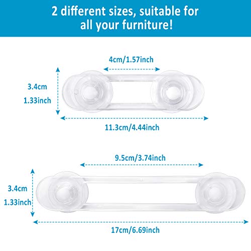 Yangfei 12 pezzi Chiusure di Sicurezza Cassetti Bambino Chiusure di Sicurezza Armadio in PS Bambini Cinghia Serrature di Sicurezza per Armadietto Frigorifero(2 Dimensioni,Trasparente)