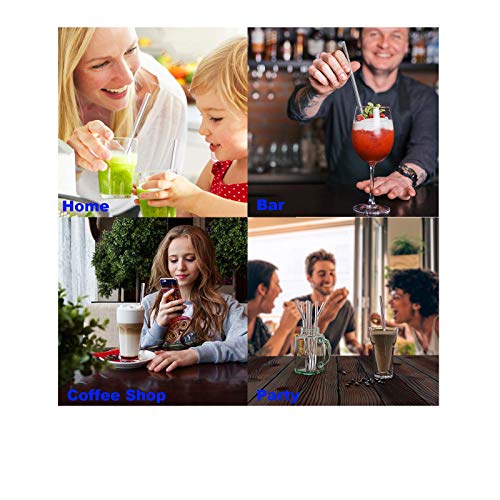 YANGJI Cannucce Vetro,Cannucce riutilizzabili in Vetro,12 PCS dritte e curve+con 2 Spazzole di Pulizia, per la pulizia per cocktail, frullati e succhi.
