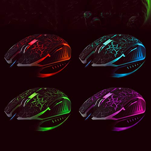 Design unico Cracking combinato con 4 colori di luce a LED, più colori si illuminano contemporaneamente, sottolineano l'atmosfera del gioco. Premere il pulsante avanti e indietro + DPI per spegnere la luce.