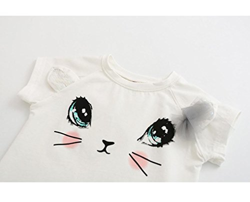YanHoo Camicia per Bambini Cat Gonna, Top Butterfly Tutu Skirt Set Abbigliamento (130, Bianco)