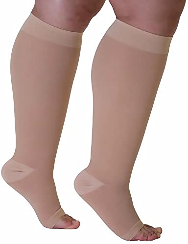 YANI Calze a Compressione per Polpaccio Oversize, Unisex Compressione Graduata,Calze a Compressione da Running,Punta Aperta,Fascia Polpacci Compressione per Vene Varicose,Gonfiore,Edema(Nero/Beige) B