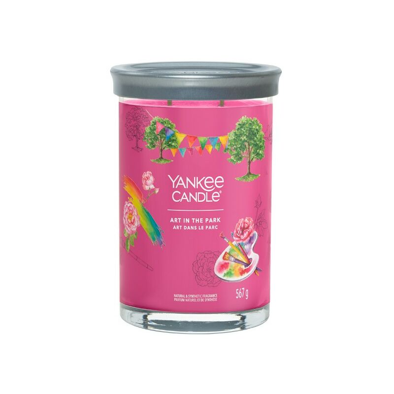 Il Tumbler Grande Art in the Park della Linea Signature di Yankee Candle vi porta in un festival d'arte all'interno di un parco. La sua Fragranza Fiorita evoca le note della mela verde, di fiori profumati con un accordo di fondo legnoso. La Fragranza fa parte della nuova collezione primavera Art in the Park di Yankee Candle: una linea pensata per far provare e innamorare delle fragranze ispirate ai colori del cibo, dei sapori e dello spirito gioioso di un festival d'arte all'aperto. Le confezioni sono decorate con illustrazioni e texture artistiche dalle tonalità acquerello. La candela è prodotta con cera di soia di alta qualità che garantisce un aroma forte e duraturo: il bicchiere di vetro con 2 stoppini dentro cui è riposta preserva e contiene la fragranza. Gli stoppini sono realizzati con fibre naturali al 100%, rigorosamente testati per garantire una combustione ottimale. Il formato Tumbler Grande offre una lunga durata: da 60 a 100 ore di piacevole profumazione. Maggiori