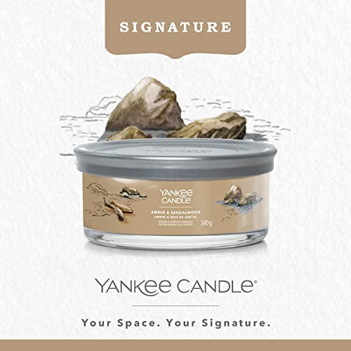 Yankee Candle Candela profumata firmata | Candela in bicchiere multi-stoppino in ambra e legno di sandalo | Candela in miscela di cera di soia | Regalo perfetto per le donne