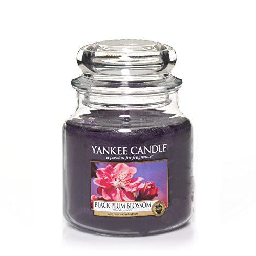 Yankee Candle, giara media Black Plum Blossom (versione inglese), candela profumata classica alla frutta, in giara media da 411 g.