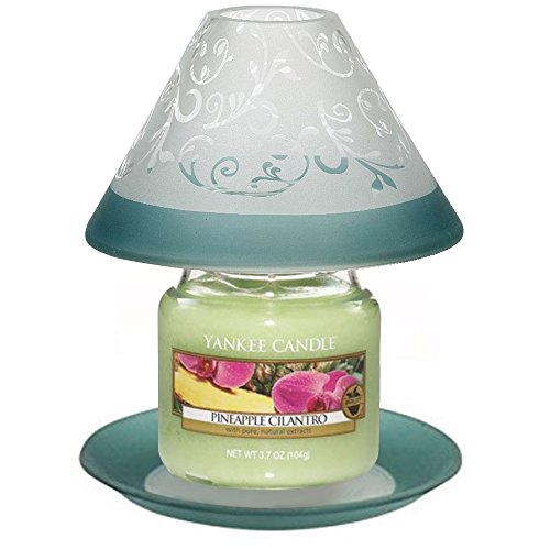 Yankee Candle - Set con vassoio e paralume piccoli, motivo edera blu, con piccola candela profumata alla magnolia in vasetto, accessori, decorazioni per casa, set regalo con piattino e copertura