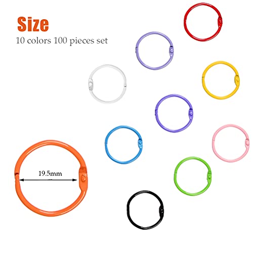 NA YANSHON Confezione da 100 Anelli per Libri Colorati 20mm Raccoglitore ad Anelli in Metallo Raccoglitore a 10 Colori Connettore per Foglie Anelli